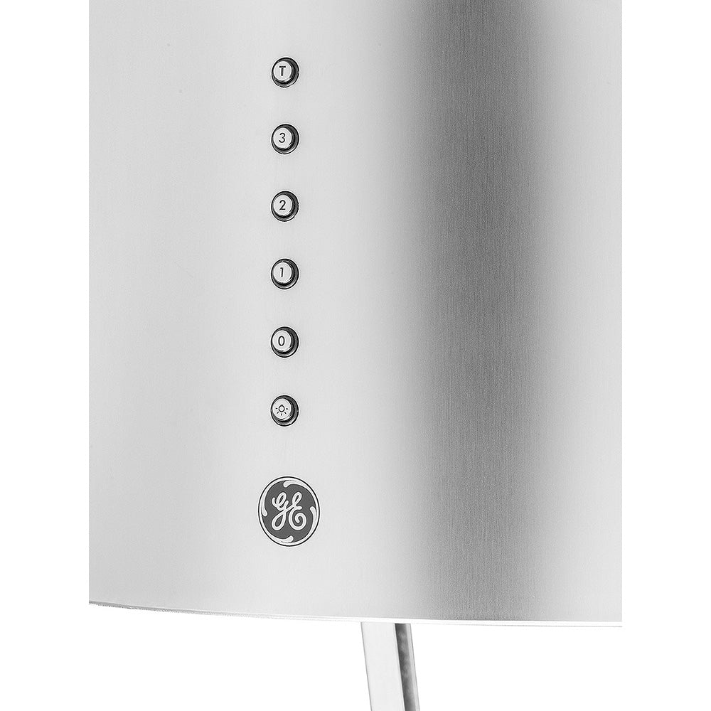 Campana de isla GE de 40 centimetros con motor turbina, filtro de aluminio y carbón activo, panel touch y filtros atrapa grasa. Disfruta de tu hogar sin malos olores.
