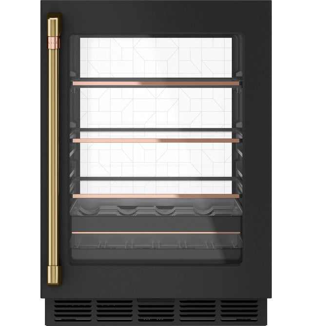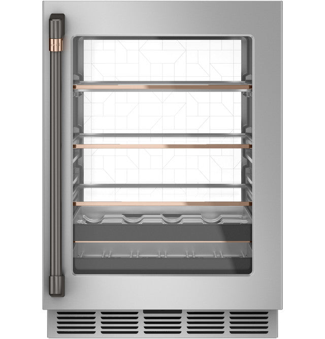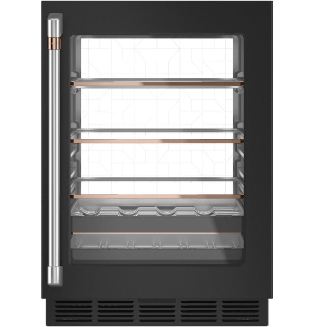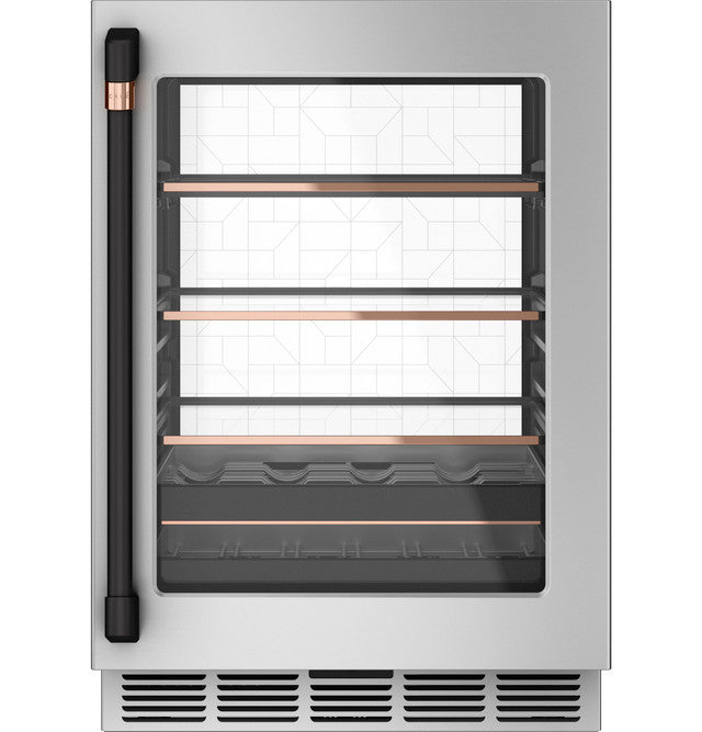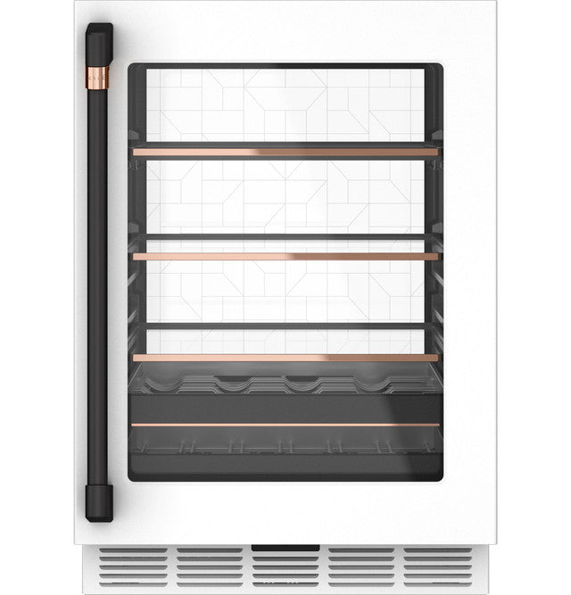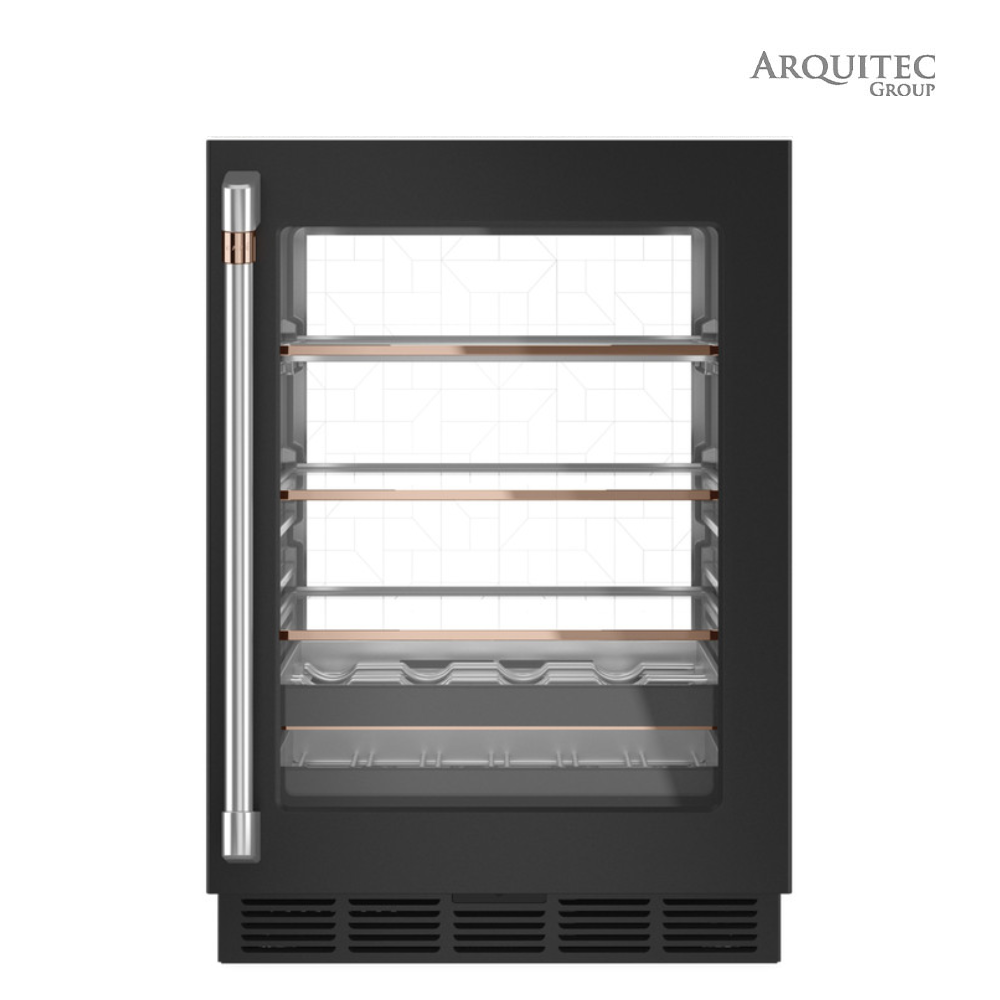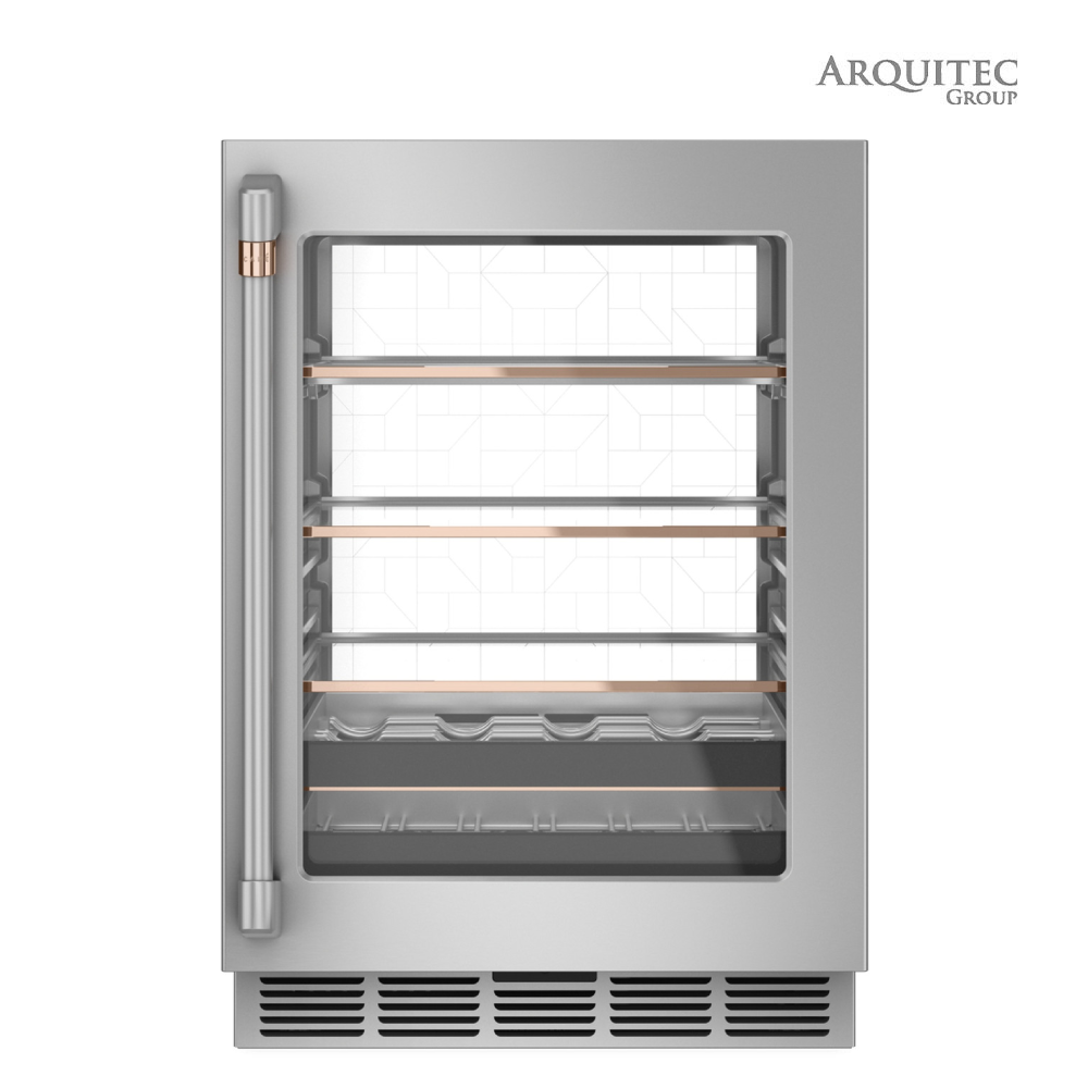 Con una instalación empotrada al ras del gabinete, este centro de vinos encaja perfectamente con el diseño general de su hogar