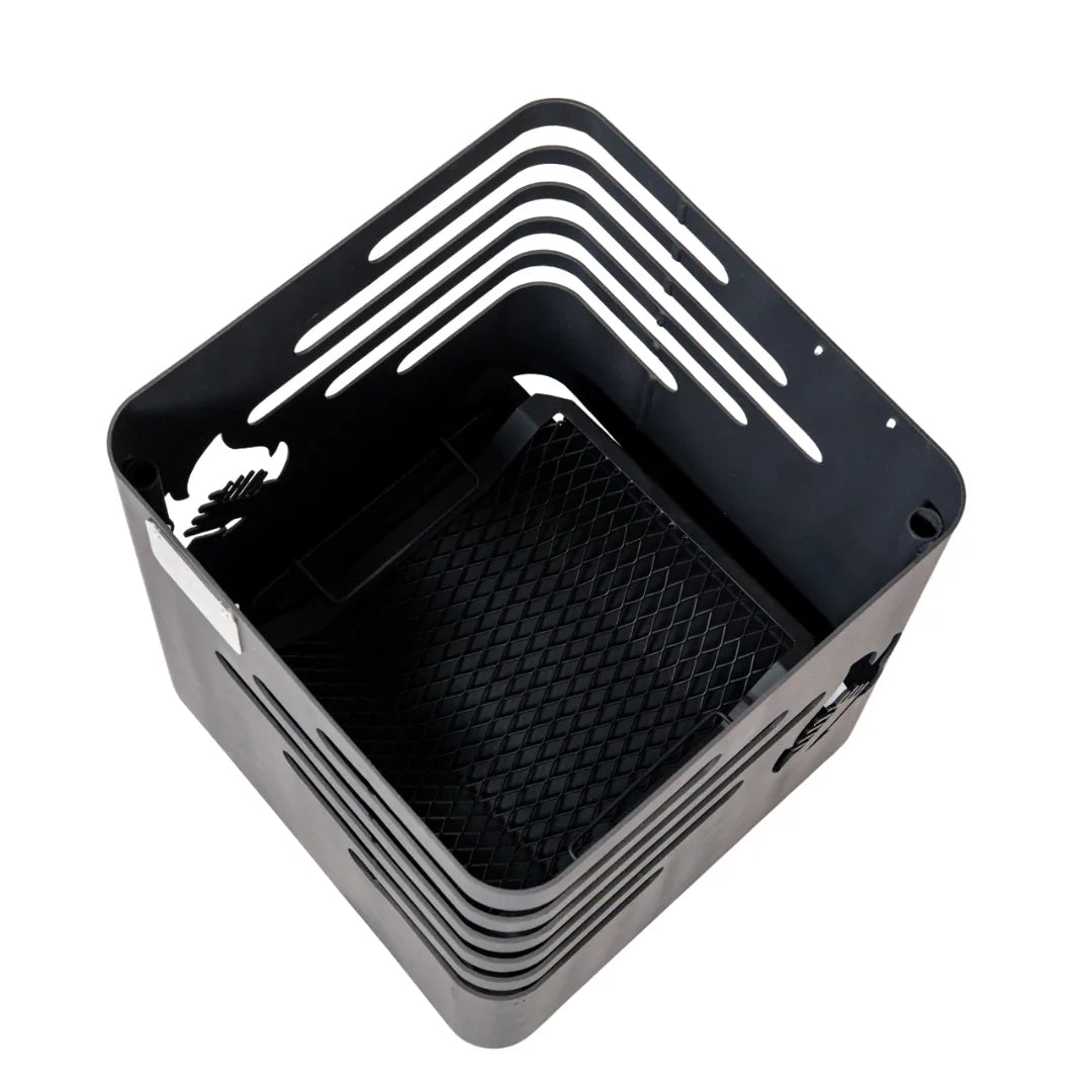 Fabricada con materiales resistentes al calor y acabados en tono nogal que evocan calidez y naturalidad, esta cesta está pensada para ofrecer una experiencia segura y duradera. Su estructura robusta garantiza estabilidad, mientras que su forma abierta favorece la circulación del aire, logrando una combustión eficiente y una hermosa visualización de las llamas.