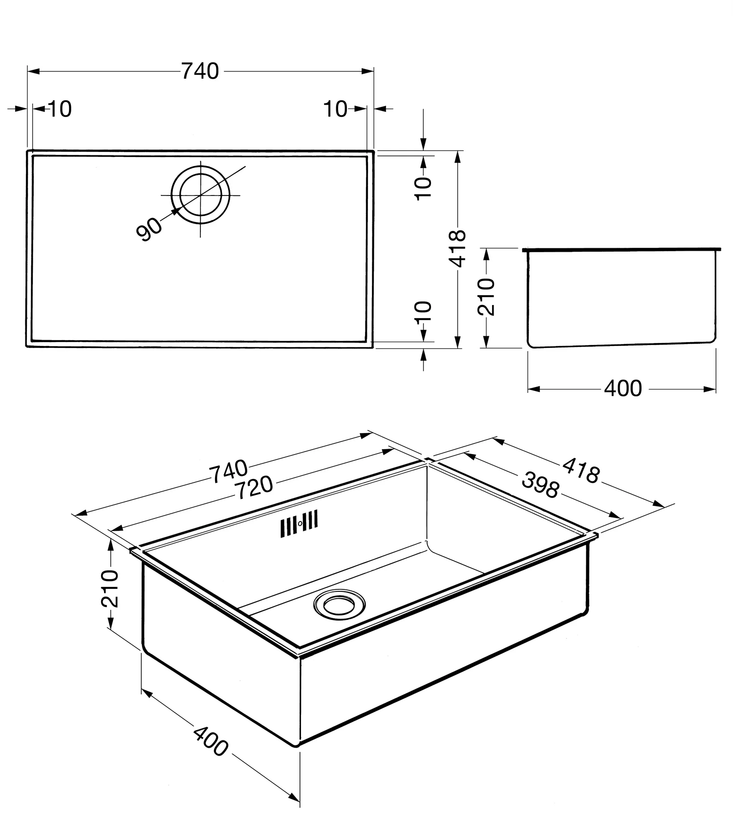 Dimensiones cubeta izq, L x P x A (mm): 340 x 400 x 200 mm