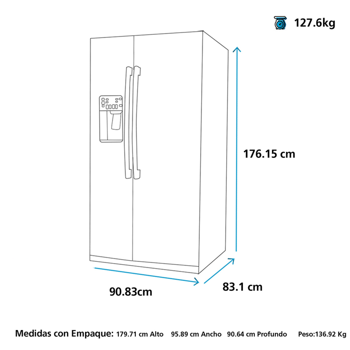 | Características | Turbo Cool Seguro para niños Alarma puerta abierta Hielo rápido Dispensador de agua |