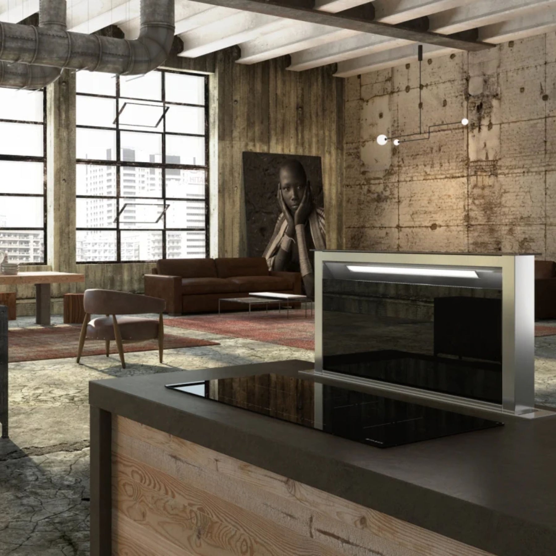 Precio habitual $10.713.000Compuesta por un cuerpo interno empotrado en la encimera de la cocina y por un motor que lo hace subir y bajar, Fabula es una campana dinámica y ligera. Cuando la campana está apagada, el cuerpo desaparece y solo se ven los mandos táctiles, colocados en un delgado panel de vidrio, que hace conjunto con la placa de cocción. Además, es posible encender una barra de ledes que ilumina la placa de cocción creando un rincón confortable y muy funcional.